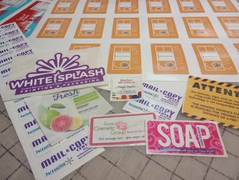 Sticker printing and label printing services play pivotal roles in branding, marketing, and organization. Stickers, known for their versatility, are utilized by businesses for product labeling, logo presentation, and promotional campaigns. They serve as portable advertising tools, offering a cost-effective way to engage customers. On the other hand, label printing ensures clarity and consistency in packaging, aiding in product identification and compliance with industry regulations. Both services demand precision, high-quality materials, and customization options to meet unique client needs. Whether it's creating eye-catching decals or ensuring information accuracy through labels, at Gentilly Mail & Copy Center we can do it all.