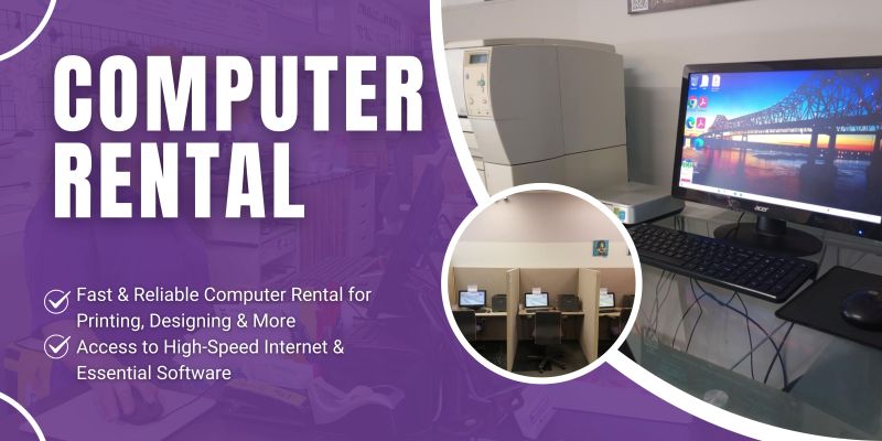 Do you need a PC or Internet access, but don’t have either one? Gentilly Mail & Copy Center has set up customer access convenient, fast PC & Internet rental in New Orleans, LA. We also boast two high output printers to have at your convience. Here at Gentilly Mail & Copy Center, we also provide full-service document printing and finishing with our knowledgable staff, so once you’re happy with your documents or marketing designs, we can print in black & white or color on a variety of paper stock and then collate, fold, staple, bind, laminate, super-size, whatever you need to help your next event have everything to make it a sucess.
