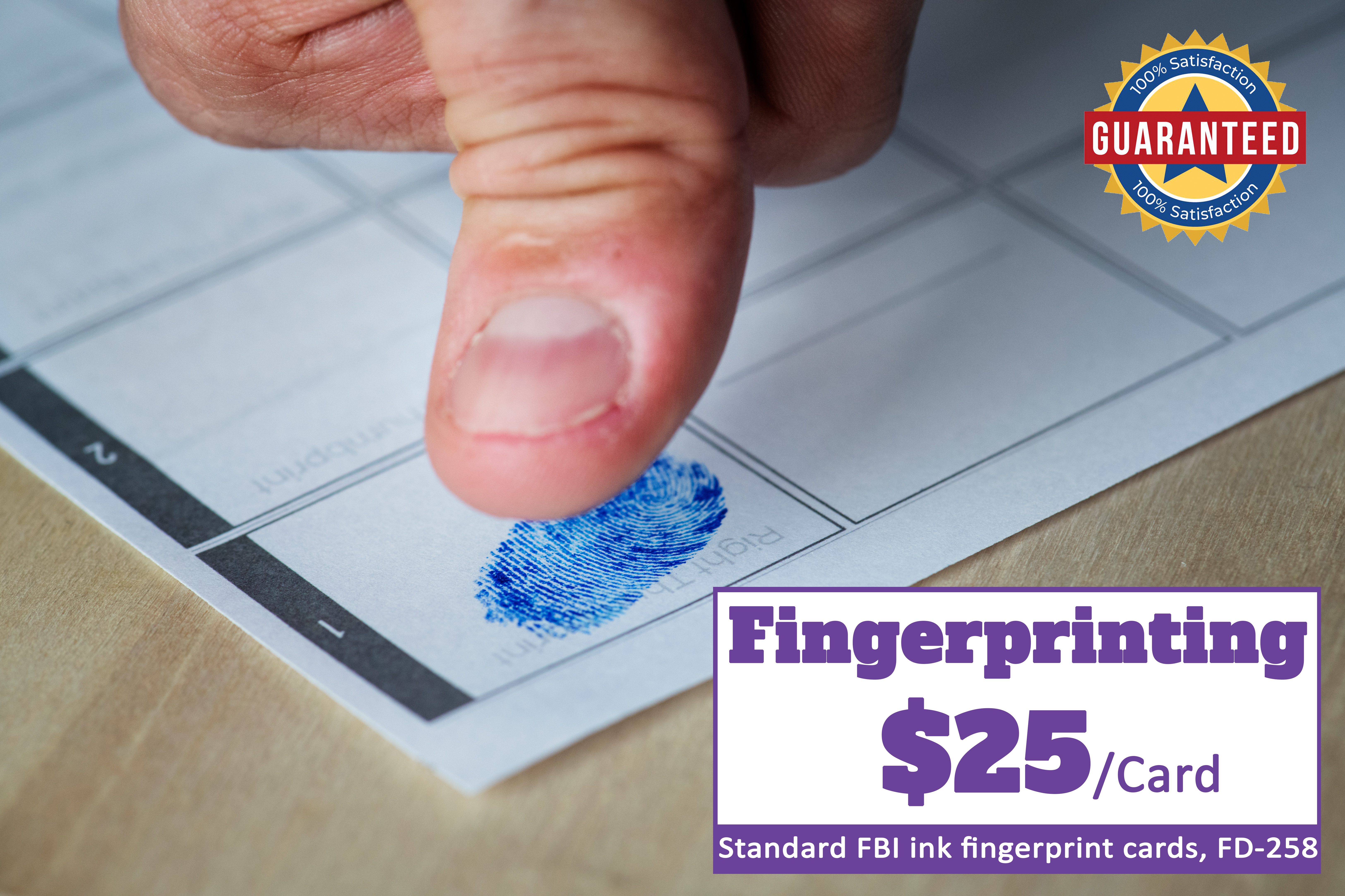 We quality check each set of prints taken to ensure they will be accepted by the requesting agency. The fingerprints can be on the standard FBI form FD-258 or on any other form that you may bring. We have fingerprinting cards available in-store, but if you bring your own card, we’re happy to print on that as well. We are known for our expert fingerprinting services and we understand the importance of having this done correctly the FIRST time.