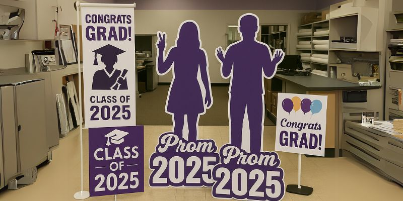 Prom night is one of the most magical nights for our local teens. Make it unforgettable with dazzling event backdrops, custom welcome signs, and fun photo props. Our team loves being a part of these milestones and creating prints that set the perfect tone for a night of memories.