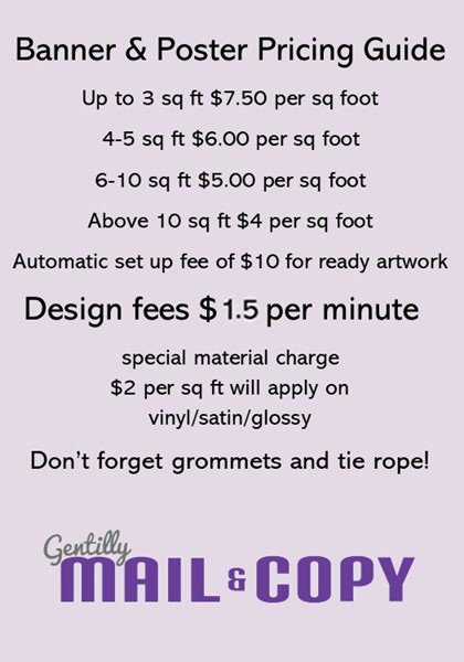Poster and banner printing pricing at Gentilly Mail and Copy Cetner